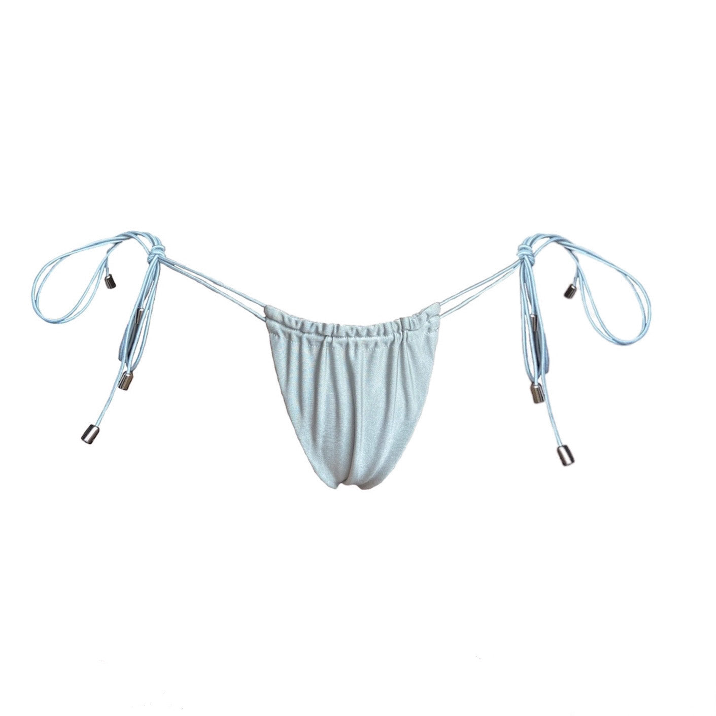 Our cheekiest bottoms yet, the Itsy bottoms. featuring double ties, the long side ties offer a versatile tie while giving you the perfect fit. The ruched detailing make the bottoms adjustable to your preferred coverage